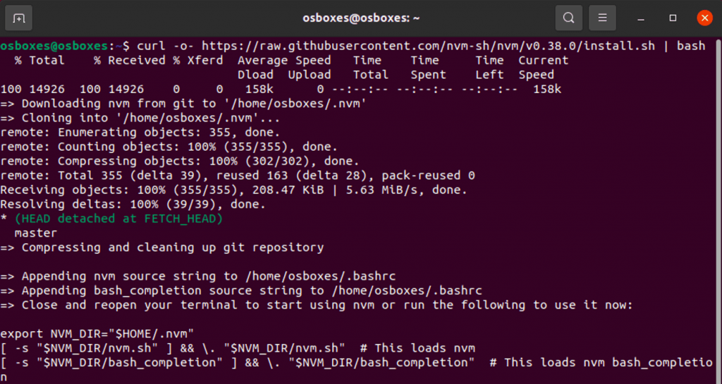 curl -o- https://raw.githubusercontent.com/nvm-sh/nvm/v0.38.0/install.sh | bash