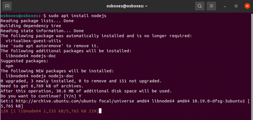 We have shown you three ways to install Node.js or npm on Ubuntu 20.04.. The method you choose depends on your requirements and preferences. Although installing the Ubuntu or NodeSource packaged version is simpler, the nvm method allows you to add and remove different Node.js versions per-user. So, go ahead, choose your node.js installation method and install node.js on Ubuntu 20.04.