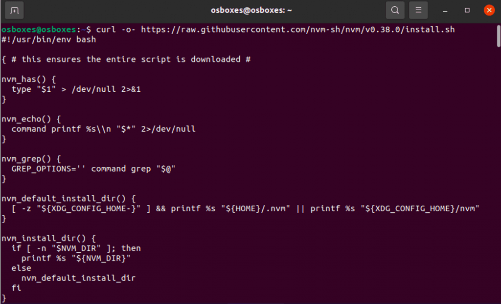 We have seen through the Ubuntu repository that only the most recent Node.js package can be installed. You can download the exact version of Node.js for a specific system by using nvm, which is an abbreviation of “Node Version Manager”. It is the bash script that contains all Node.js versions. This allows users to install and test any Node.js variant as they need.