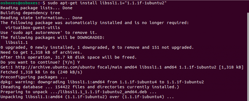 sudo apt-get install libssl1.1="1.1.1f-1ubuntu2"