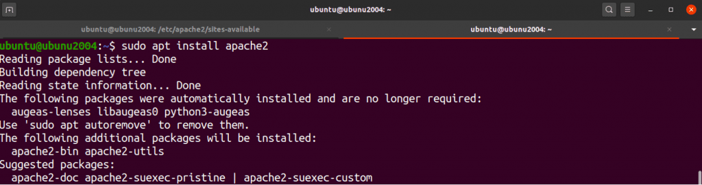 ubuntu@ubunu2004:~$ sudo apt install apache2