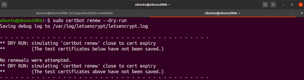 ubuntu@ubunu2004:~$ sudo certbot renew –dry-run