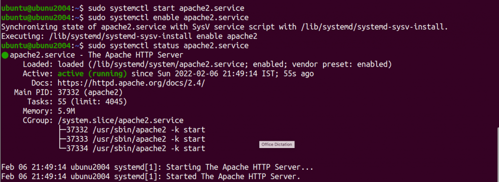 ubuntu@ubunu2004:~$ sudo systemctl start apache2.service