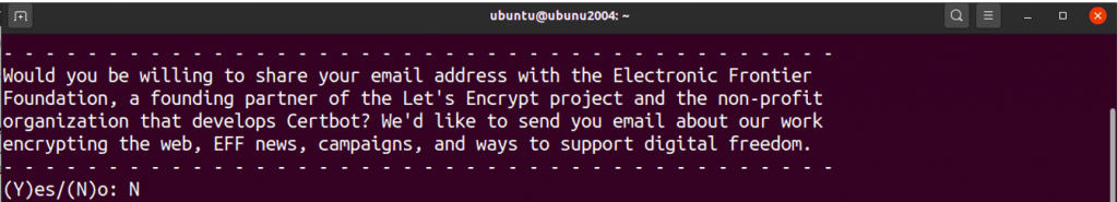 It will then ask you to share your email address with EFF (Electronic Frontier Foundation). Type Y if it is necessary or N if not.