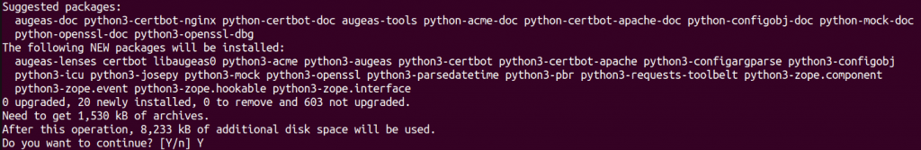 Start the installation process of Certbot and python3-certbot-apache, using the command given below.