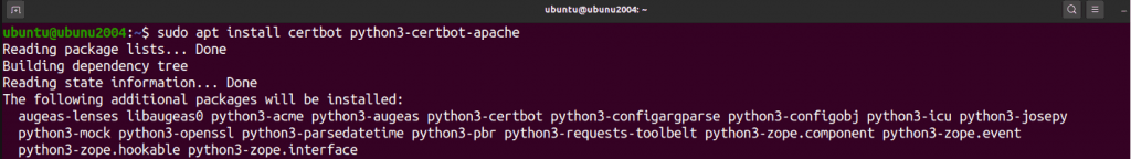 ubuntu@ubunu2004:~$ sudo apt install certbot python3-certbot-apache