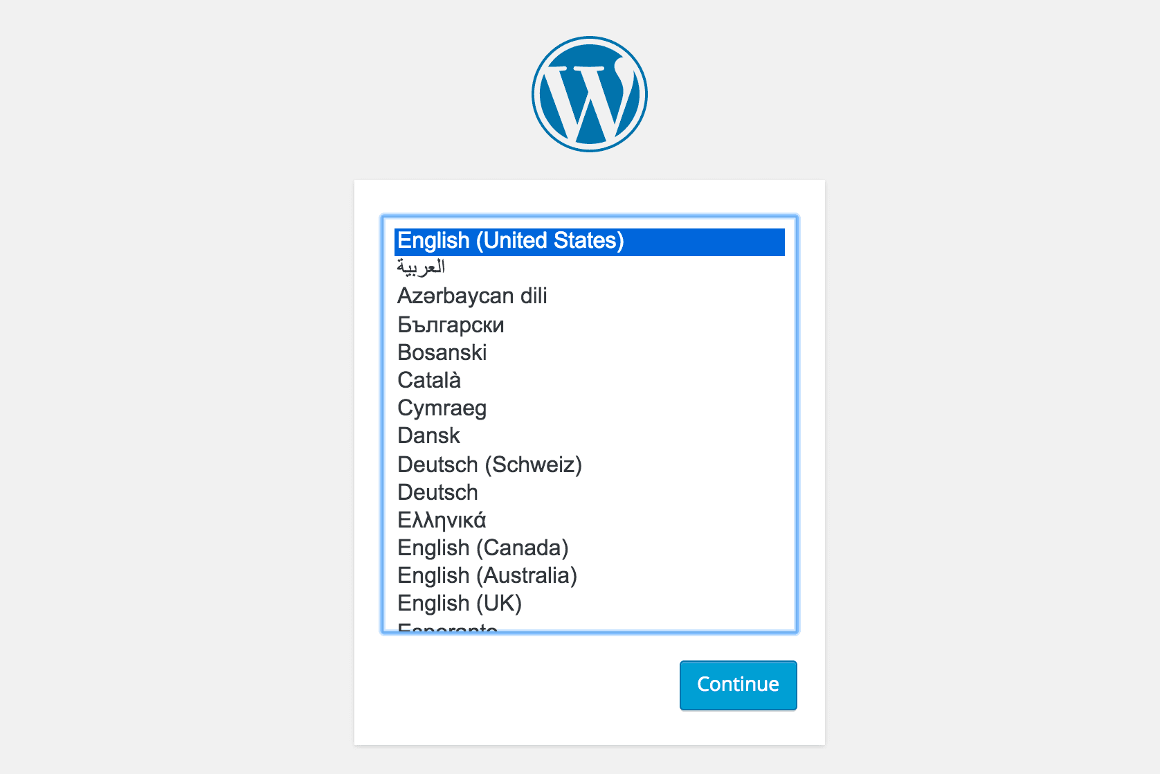 You will first be greeted with a simple form asking you which language you would like to use to complete your installation, select the language of your choice.