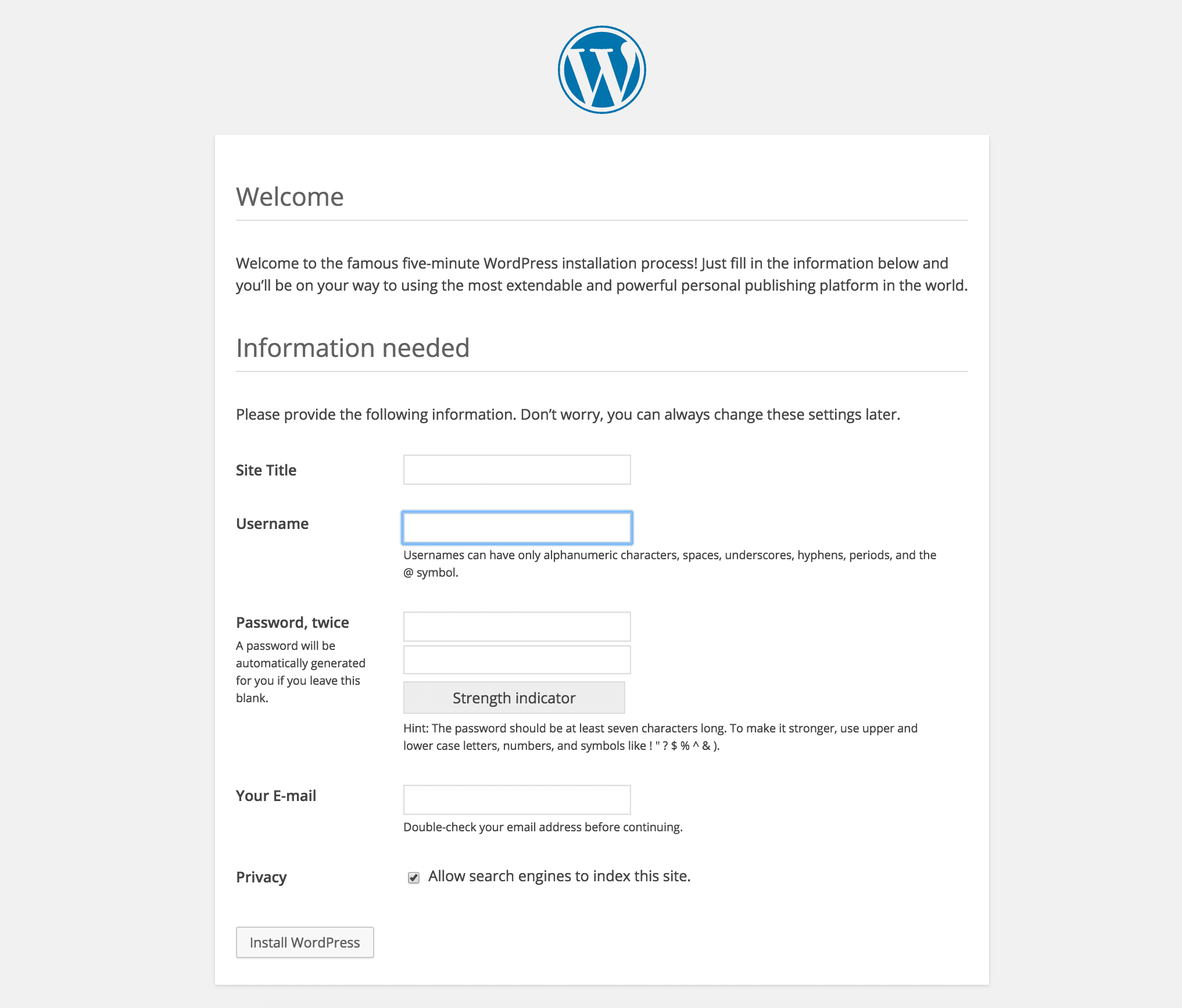 Once you have made that choice, you’ll have to fill out some basic information about your blog to complete the installation, the form should be pretty straightforward.